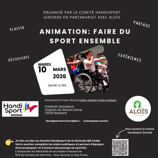Le mardi 10 mars 2026, ALOÏS organisera au Gymnase Séguinaud de Bassens un après-midi sportif et inclusif, en partenariat avec le Comité Handisport Gironde.
